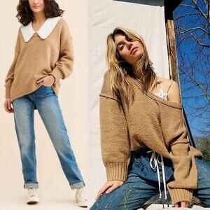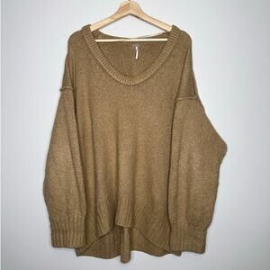 Free People Brookside Tunic Sweater Oversized Slouchy Fit Neutral Tan Small