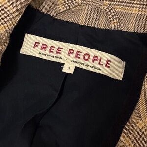 Free People Brown And Tan Plaid Blazer Women’s Size S NWOT