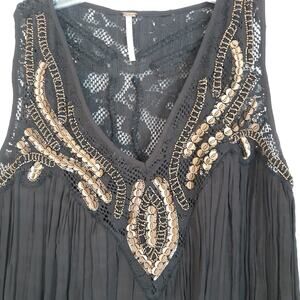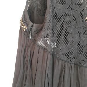 Free People Brown Beaded Lace Bodice Dress Swing Style