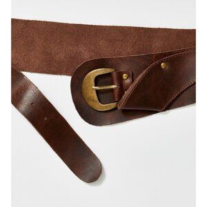 Stylish brown belt with a gold buckle. Perfect for adding a chic touch to any outfit.