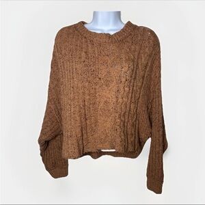 Free People Brown Crew Neck Cable-Knit Sweater Small Women’s Oversized Chunky