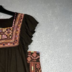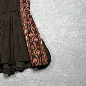 Free People Brown Day Glow Mini Dress XS Boho Embroidered Raw Edge Open Back