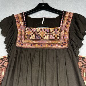 Up for sale: Free People Brown Day Glow Mini Dress XS Boho Embroidered Raw Edge Open Back