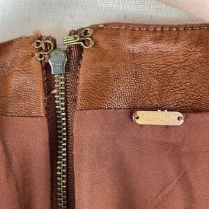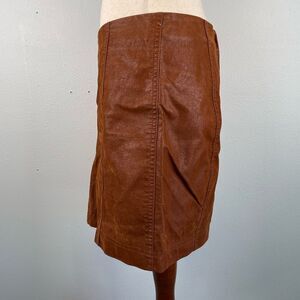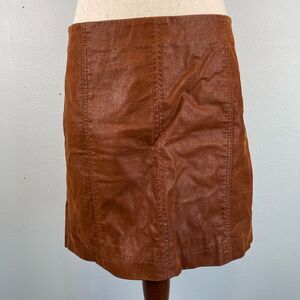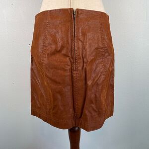 Super cute and classic leather style skirt by free people. It is in excellent preowned condition and measures 15.5 inches at the waist laying flat, 18.5 inches at the hips, and 16 inches in length.