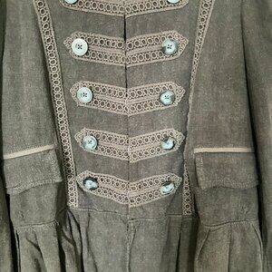 NWT - Free People jacket with embellished button front. Frayed bottom hem, defined shoulders, eyelet hook closure. Can be worn open or closed, runs large. Perfect for fall.