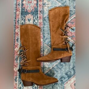 Free People Brown Over the Knee Boots with Black Buckle Straps (New without tags