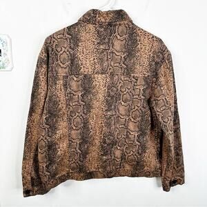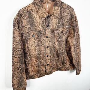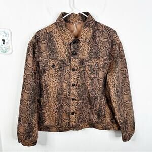 Free People Brown Snake Print Button Front Denim Trucker Jacket Size M