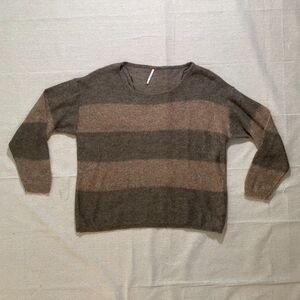 Free People | Brown Striped Lightweight Oversized Mohair Blend Sweater | XS