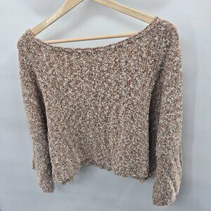 Free People Brown White Cropped Oversized Boxy Cotton Sweater XS