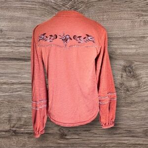 Free People Brown and Pink Long Sleeve Embellished Blouse with Mandarin Collar