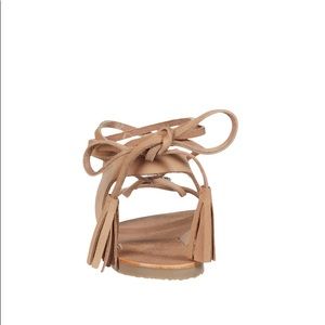 Make a boho-chic statement in the roped, leather Free People™ Bryn Marr Wrap Sandal featuring a single strap along the foot and ankle tie closure.