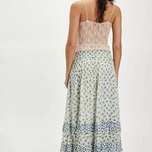 Free People Brynn Printed Maxi Skirt Smocked Tiered Ruffle Pull On S