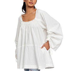 Free People Brynn Tunic Too White Textured Long Sleeve Boho XS NWT $108
