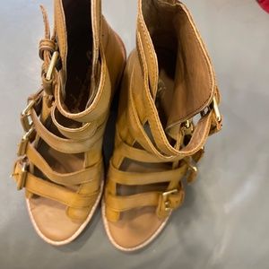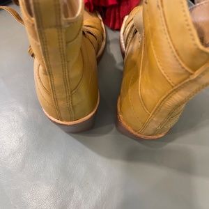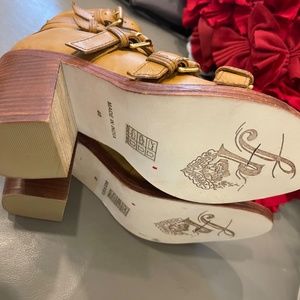 Free People Buckle Up Baby Block Heels Strappy Tan Open Boot