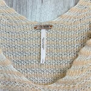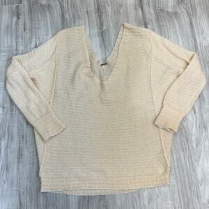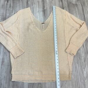 Free People Bumblebee Oversized Open Knit V-Neck Slouchy Sweater Peach Pink L