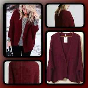 Free People Burgundy Chunky Knit Cardigan/ Sweater