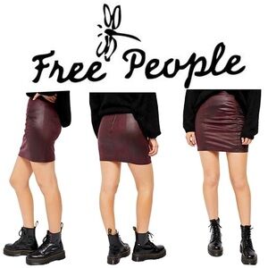 Free People Burgundy Faux Leather Ruched Skirt NWT