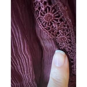 Tags: FreePeople, Blouse, Burgundy, Boho, Lace, Sheer, Womens, Petite, Button, Rayon