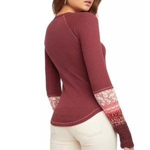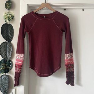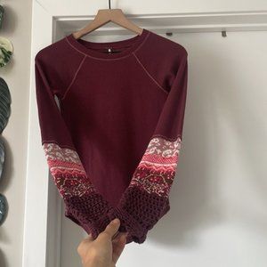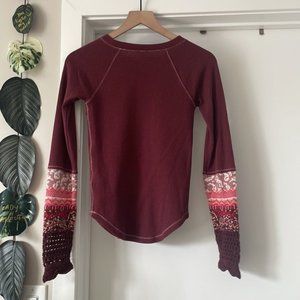 Stylish long sleeve top. Burgundy color with patterned sleeves. Comfortable and chic. Worn once.
