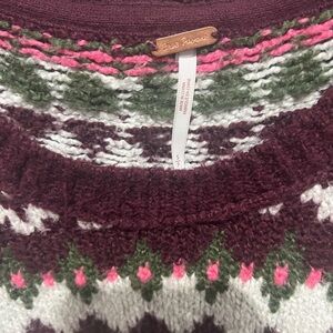 Free People Burgundy and Green Knit Sweater Vest Size Small Fall Christmas