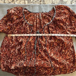 Free People Burnt Orange Paisley Pleated Boho Front Tie Blouse size S