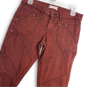 Free People Burnt Red/Orange Checkered Cotton Mid Rise Moto Pants size 28