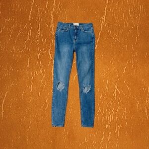 Free People ‘Busted Knees’ Medium Wash Distressed Skinny Jeans Size 29 Long