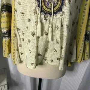 Free People But I Like It Women’s XS Ivory Embroidered Crop Tunic 3/4 Sleeve Top
