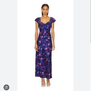 Free People Butterfly Babe Midi Dress NWT Navy Combo Size XL