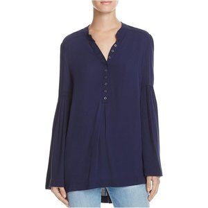 Free People Button Down Blouse Navy Bell Sleeve Long Sleeve Womens Medium Blouse