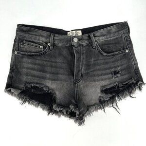 Free People Button Fly Cut Off Cheeky Black Beach Distressed Denim 28 Jean Short