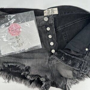 Free People Black Button Fly Cut Off Cheeky Festival Beach Distressed Denim 28 Jean Shorts