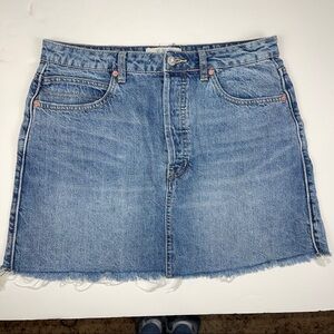 Free People Button Fly Fray Hem Jean Mini Skirt 30