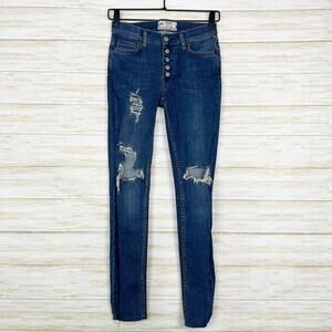 Free People Button Fly Raw Hem Distressed Skinny Jeans