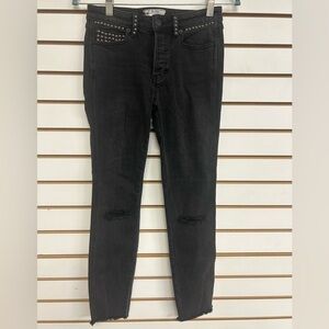 Free People Button Fly Studded Distressed Raw/Frayed Hem Black Jeans - Size 25