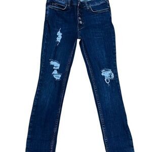 Free People Button Fly Distressed Cropped Jeans Size 27