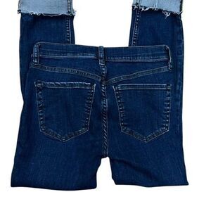 Made a 78% cotton, 15% Lyocell, 5% polyester and 2% spandex. Features a button fly, front/back pockets, distressed on the front legs and raw hem. Laying flat measure 14" waist, 14.5" hips, 8.5" rise, and 24" inseam. Be sure to check out all of my other free people listings