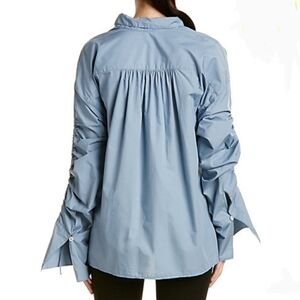 Free People Button Front Long Sleeves Drawstring Cotton Oversized Blue S NWT
