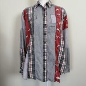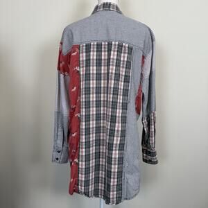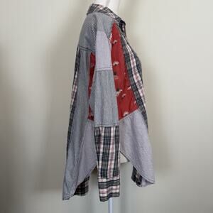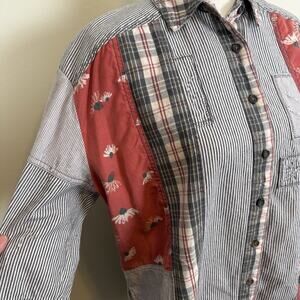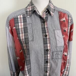 Free People Button Up Shirt Women Small Patchwork Distressed Hi-Lo Boho Cottage