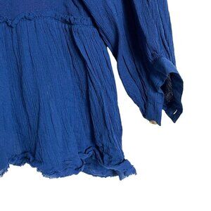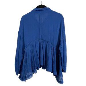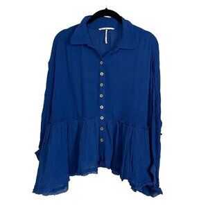 Free People Button Up Teal Blue Babydoll Oversized Shirt Size S Button Up