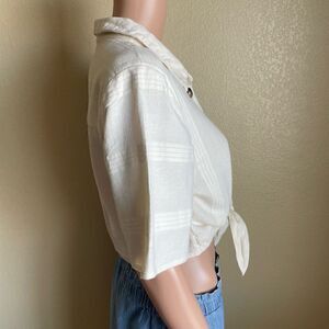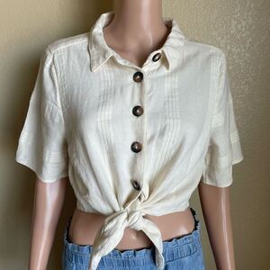 Free People Button Up Front Tie Linen Blend Top Ivory Large NWT