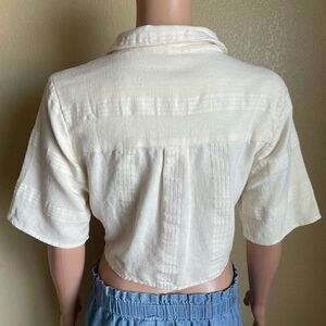 Cropped button up front tie top by Free People