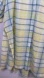 Lightweight semi sheer gauzy blend of 99% cotton 1% spandex in a cheery blue, yellow and white checked plaid pattern.