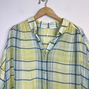 Free People By My Side Long Button Up Tunic Top Blouse Shirt Duster Womens M