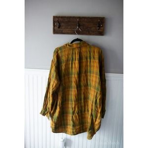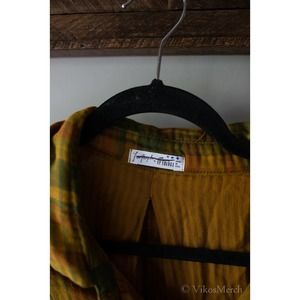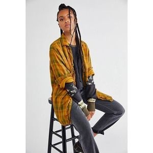 Free People CP SHADES Ruffle Plaid Buttondown HONEY MUSTARD Medium