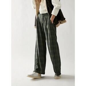 Free People CP Shades Plaid Trousers Millstone Green Slouchy Size Extra Large