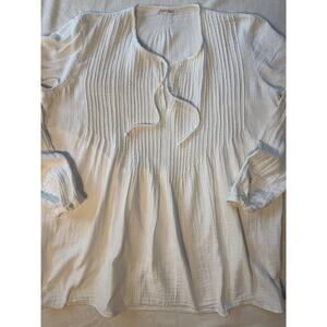 Free People CP Shades White Pleated Peasant Boho Top Pleated Cotton Blouse M