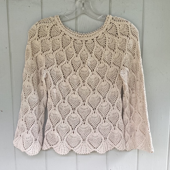 Free People CROCHET boho top ivory blouse xs
