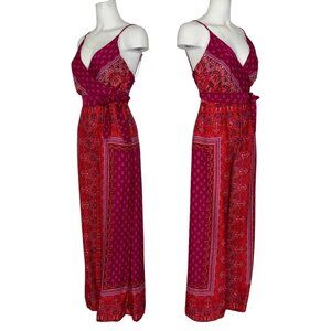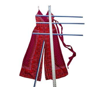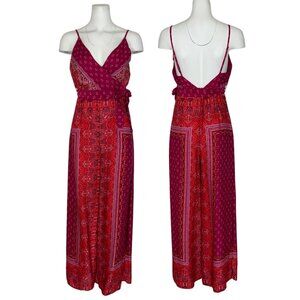 Free People Cabbage Rose Jumpsuit 4 Pink V-Neck Sleeveless Wide Leg Tie Waist