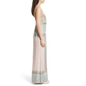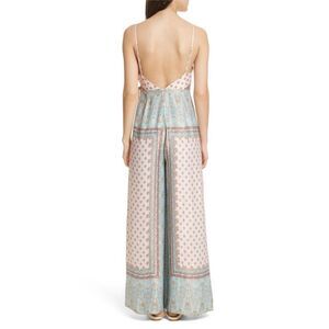 Free People Cabbage Rose Scarf Print Wide Leg Satin Jumpsuit Neutral Combo - 6